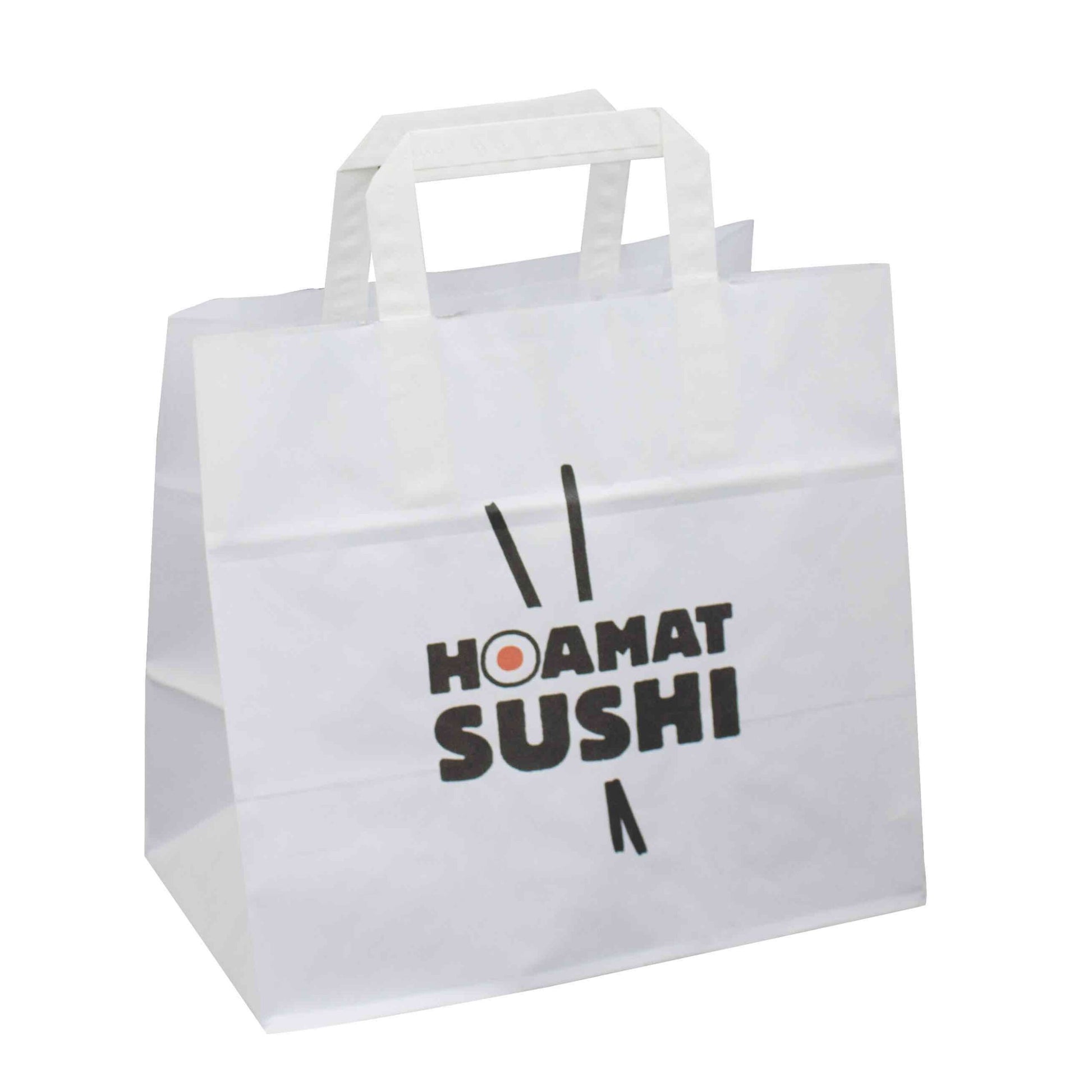 Diese Paper Bags für Food Service sind zu sehr günstigen Preisen ab 0,54 €/Stück erhältlich. Sie haben eine Papierstärke von 70 Gramm und sie sind in 2 unterschiedlichen Größenformaten  und in den Verpackungseinheiten von 250 bis 1000 Stück Tragetaschen erhältlich.