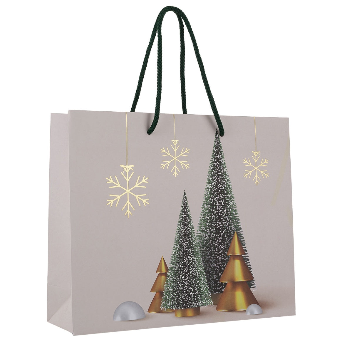 Moderne und stabile Papiertragetaschen mit Weihnachtsmotiv „Tannenbaum“ – ideal für festliche Geschenkverpackungen. Perfekt geeignet für Fashion-, Beauty-, Interior- und Lifestyle-Produkte. Jede Tasche verfügt übergedrehte PP-Henkel, verstärkten Randumschlag und Extra-Bodeleinlage in der Papierstärke von 160 g/m² für optimalen Tragekomfort.